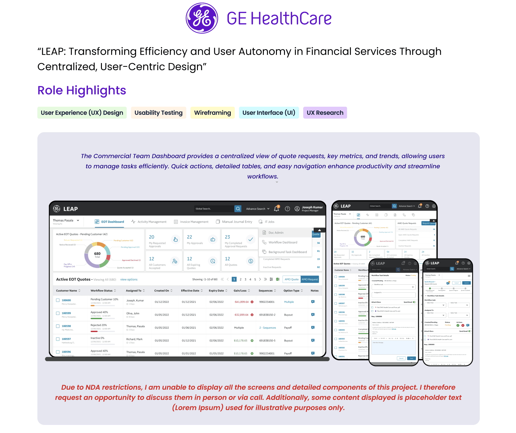 Redesigned GE Healthcare’s quoting platform into a streamlined, user-centric system—enhancing responsiveness, integrating workflows, and elevating customer experience across devices.